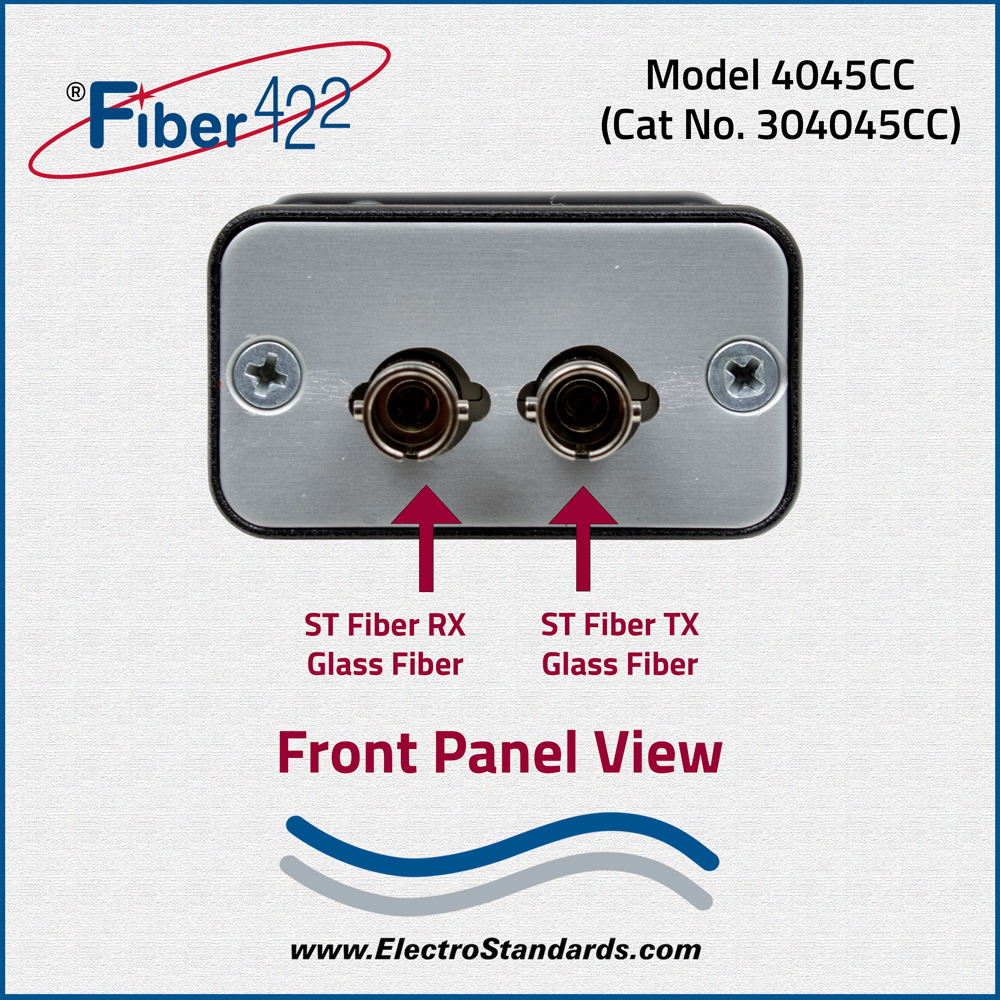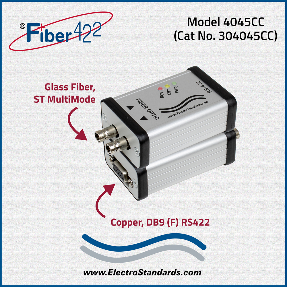 - Model 4045-CC converts ST Duplex Fiber to Copper RS422 DB9 (F) port.