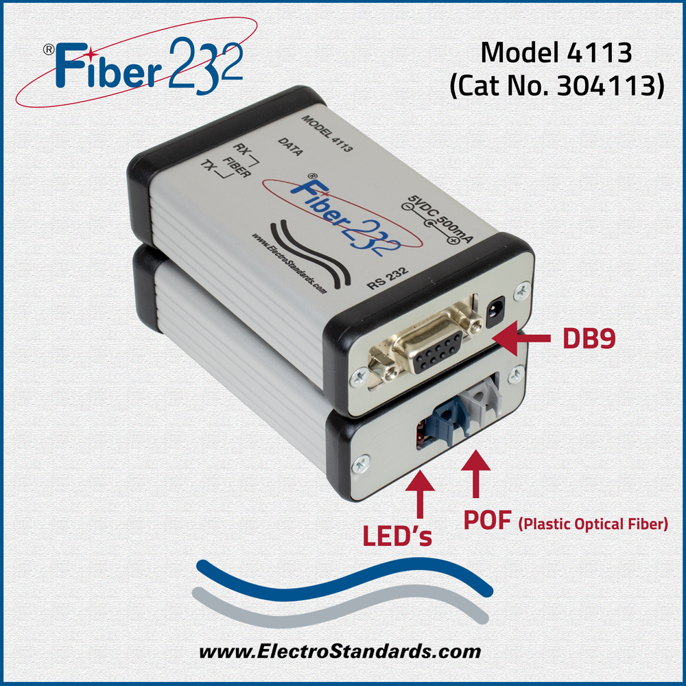 Fiber 232® Model 4113 (POF) Plastic Optical Fiber to RS232 DB9 Port Converter