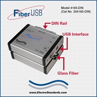 Model 4165-DIN, (requiring a DIN Rail mount) ST Fiber-to-USB Interface Converter with integrated rate buffering convert USB 2.0 compliant data rate from a standard PC to a serial asynchronous data interface over fiber with a user-selectable baud rate of up to 3 Mbps. This converter is ideal for high speed, secure communications, and optical isolation.