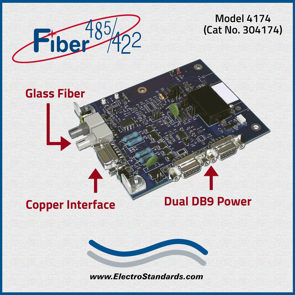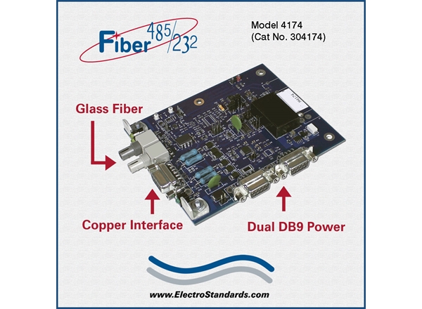 The Model 4174 is a very high speed ruggedized, protocol independent, Fiber to RS485/422/232 interface converter from Electro Standards Laboratories. Typical operating speeds are up to 1.5 Mbps for RS232 to fiber conversion and up to 5 Mbps for RS485/422 to fiber conversion. Designed to operate from -40°C to 85°C, it is a member of Electro Standards Laboratories’ (ESL) rugged community fiber-to-copper media converter family.
