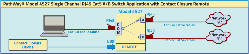 Path Way® Model 4527 Single Channel RJ45 Cat5 A/B Switch with Contact Closure Remote