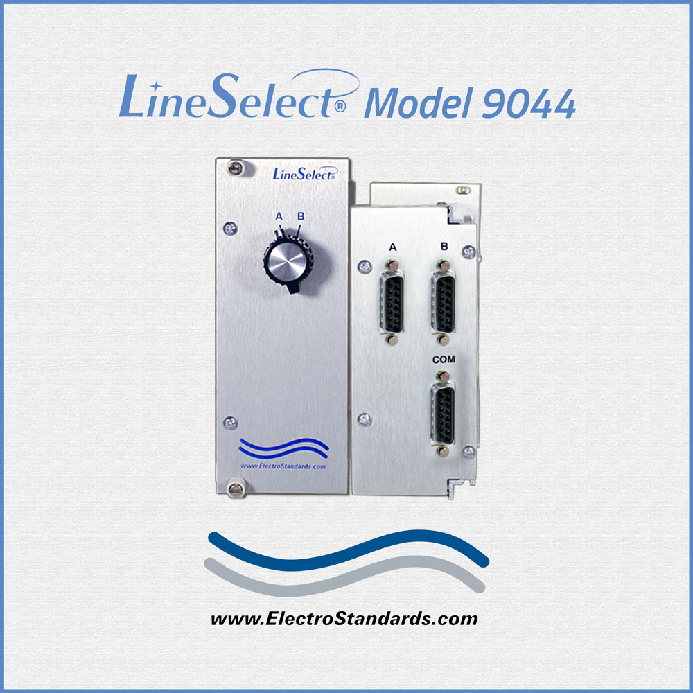 The LineSelect® Model 9044 allows the user to access two DB15 devices connected to the A and B ports from one DB15 device connected to the COMMON port. Switching between devices A and B is quick and easy via the front panel rotary selector. The Model 9025 Rack accommodates up to eight Model 9044 switch modules, as your requirement grows.