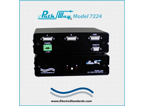 The PathWay® Model 7224 Single Channel DB15 X.21 Interface A/B Switch allows the user the capability of sharing a single port interface device, connected to the “COMMON” port, among two other devices, connected to the “A” and “B” ports, with remote access functionality. The Model 7224 is enclosed in a slim desktop enclosure.
