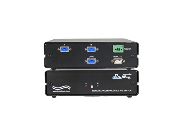 The PathWay® Model 7200 Single Channel DB9 A/B switch with RS232 Remote allows the user the capability of sharing a single port interface device connected to the "COMMON" port among two other devices connected to the "A" and "B" ports, with remote access functionality. The Model 7200 is packaged in a slim desktop style enclosure.