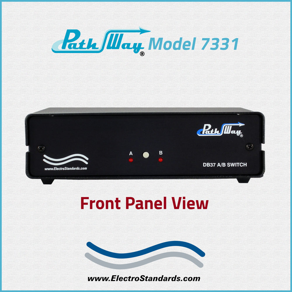 The PathWay® Model 7331 Single Channel DB37 A/B Switch allows the user the capability of sharing a single DB37 interface device connected to the COMMON port among two other devices connected to the "A" and "B" ports. The Model 7331 is packaged in a slim desktop style enclosure.