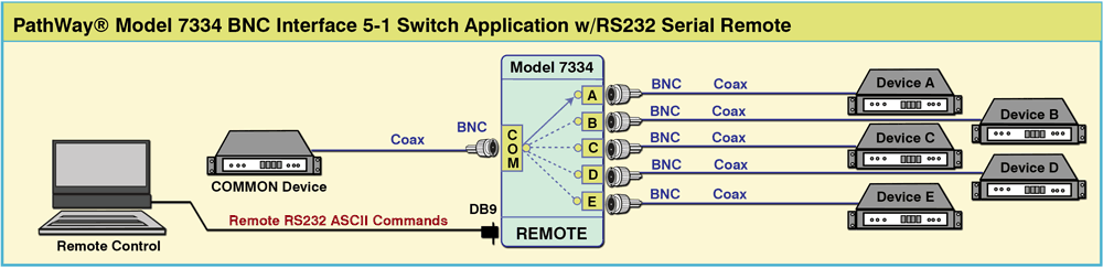 PathWay® Model 7334 BNC Coaxial 5-to-1 Switch w/ RS232 Serial REMOTE: