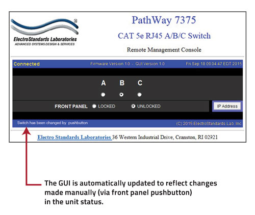 PathWay® Model 7375 Cat5e RJ45 A/B/C Switch, Dual Remote Ports with Telnet and GUI Application: